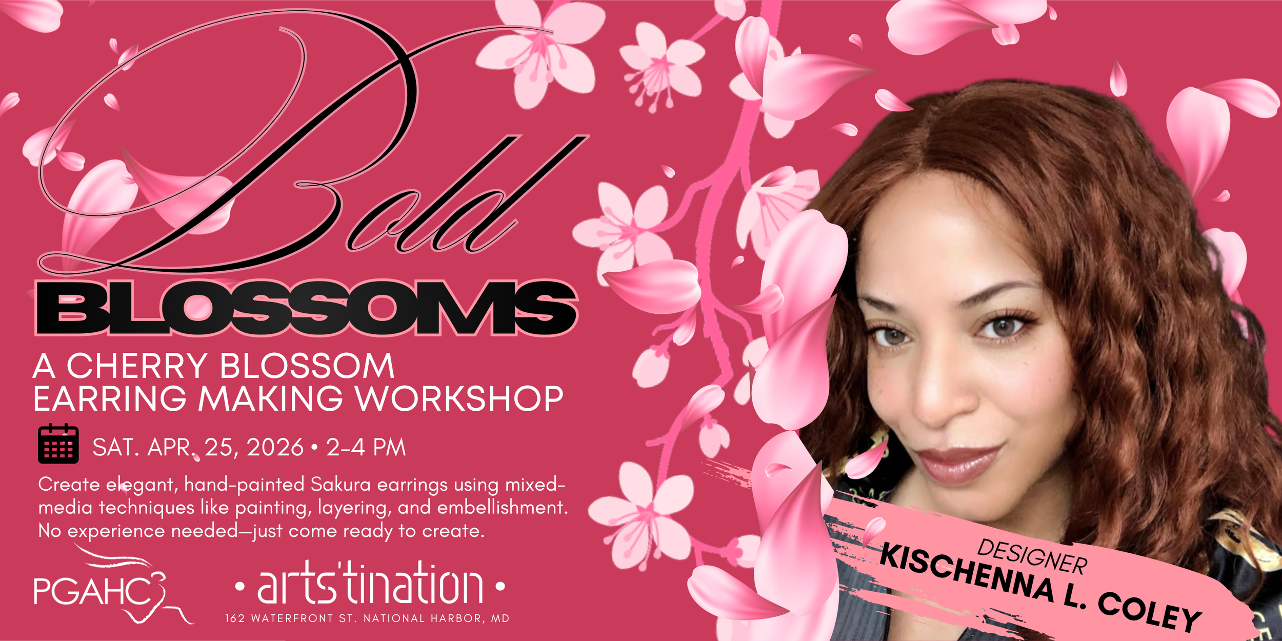 Celebrate cherry blossom season with a hands-on creative experience at Arts’tination. Join us for Bold Blossoms, a guided workshop where you’ll design and create your own cherry blossom-inspired earrings using a blend of painting, textile accents, and embellishment techniques.